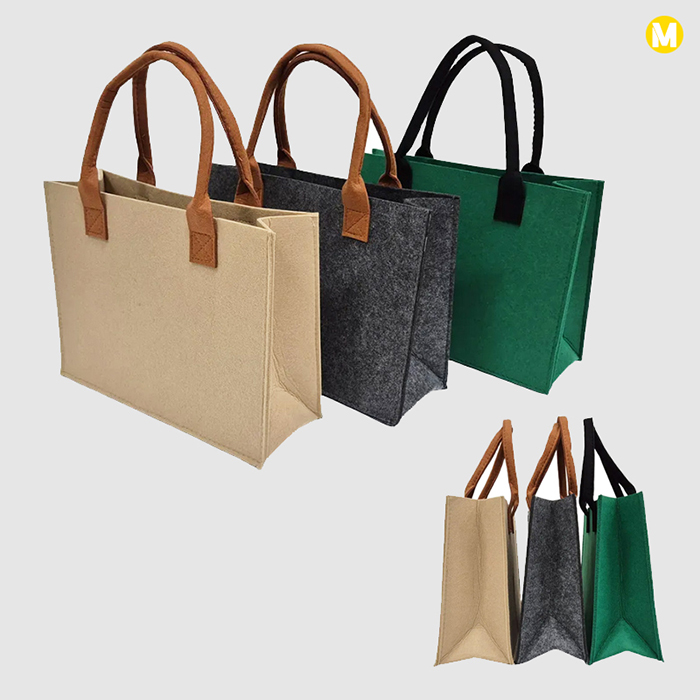 [모모카멜] 핸들 포인트 무지 펠트백 33X25X11cm HE37