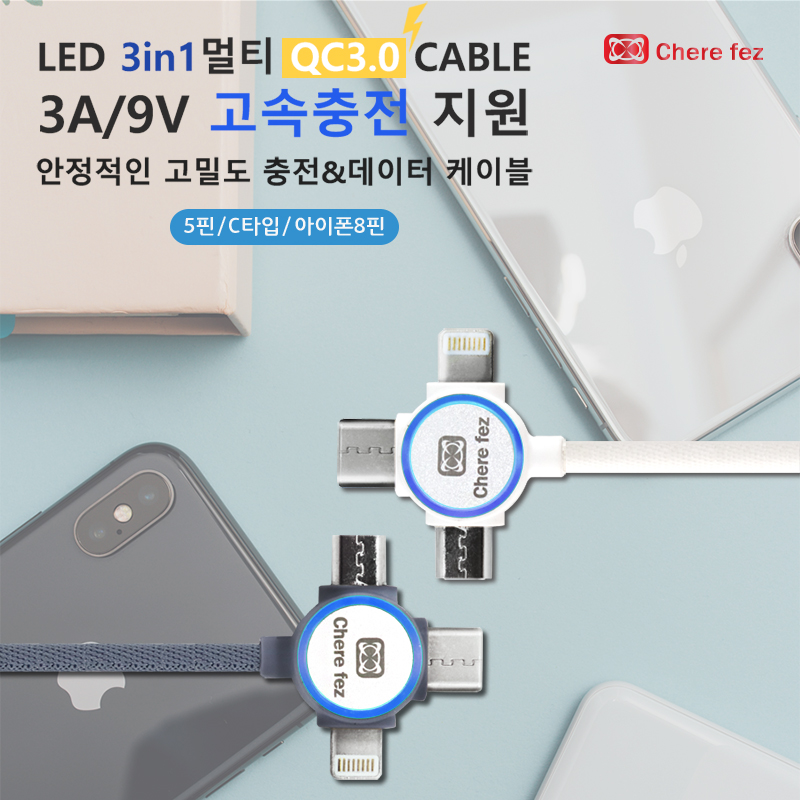 LED 3in1 멀티 3.0QC케이블,LED 3in1 멀티케이블