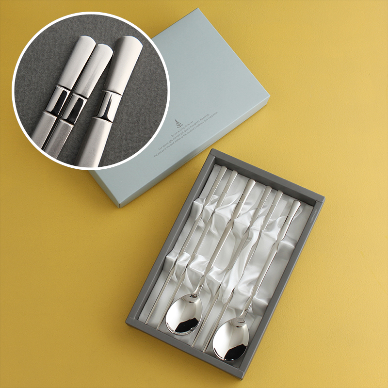 뱀부 실버 2인 수저 세트 답례품 고희답례품 결혼답례품