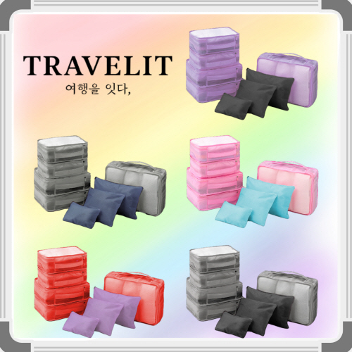[트래블잇] 내맘대로 8컬러 믹스 여행용파우치 8종세트 캐리어정리 실속구성 8P