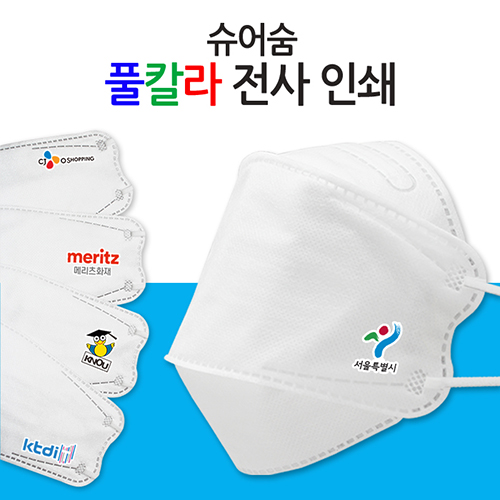 (전사인쇄)KF94 3단형 4중 화이트 마스크 (슈어숨)
